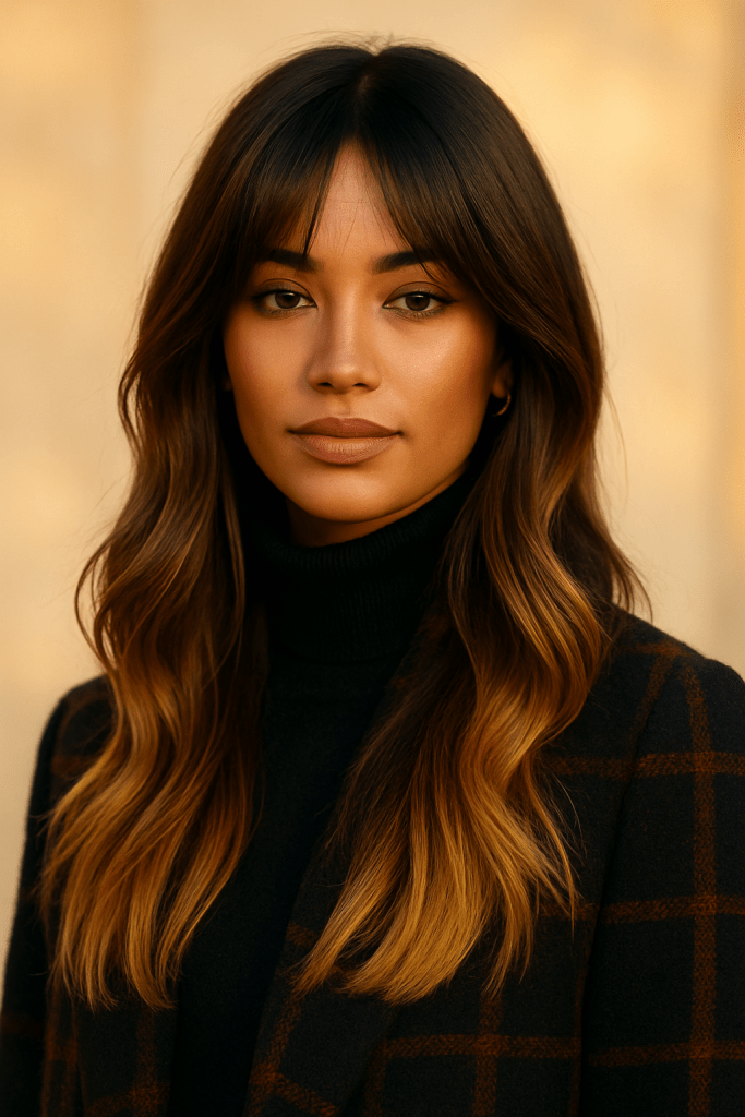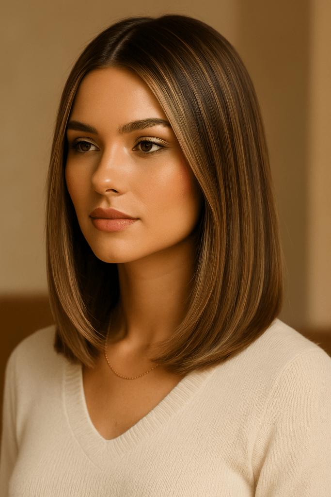 This color works because it adds depth and warmth without looking brassy or flat. It brings out your skin tone, brightens your face, and makes every outfit look a little more intentional. The light hits the bronze tones just enough to give a soft, candlelit glow, whether you’re in daylight or sitting under cozy café lights.